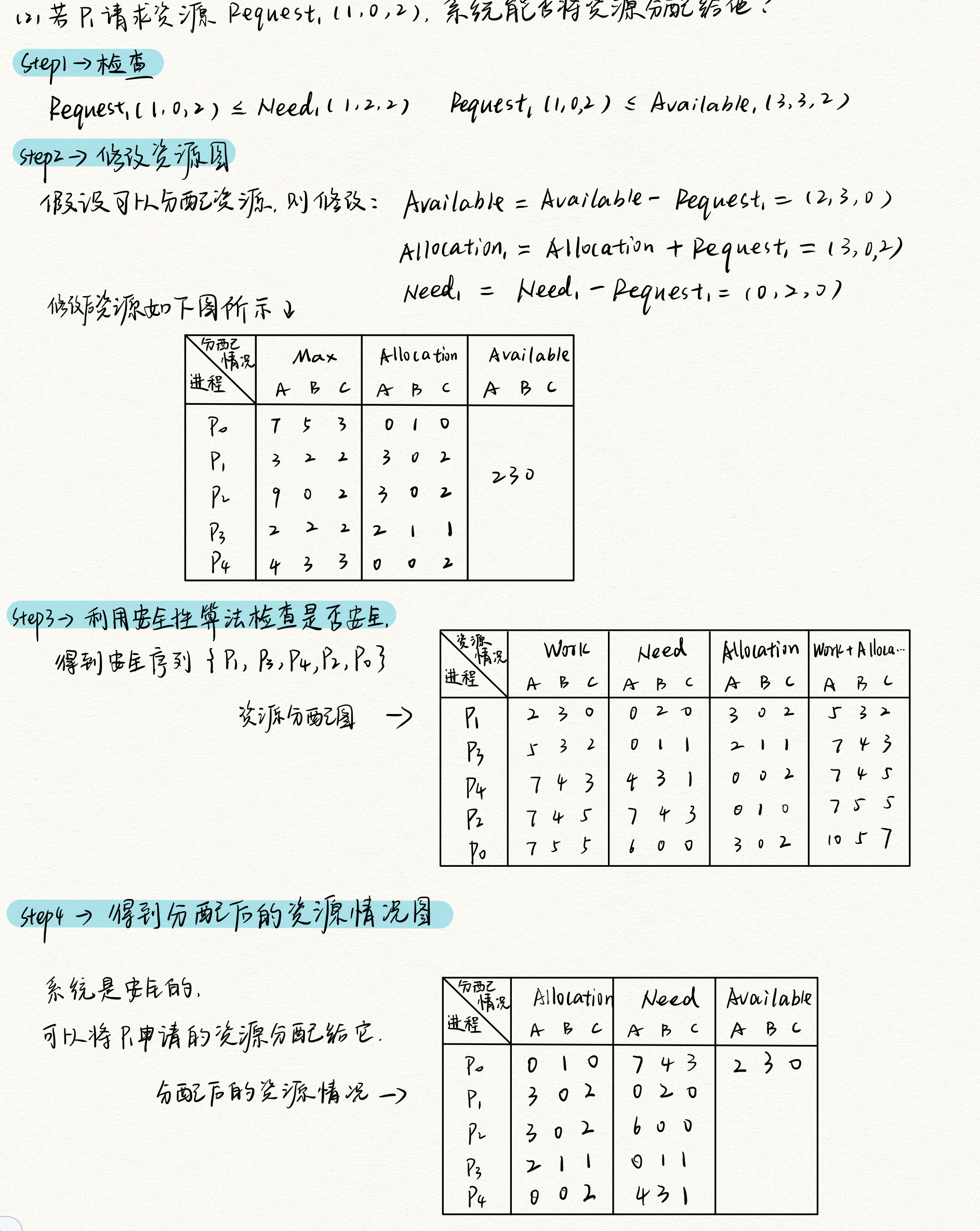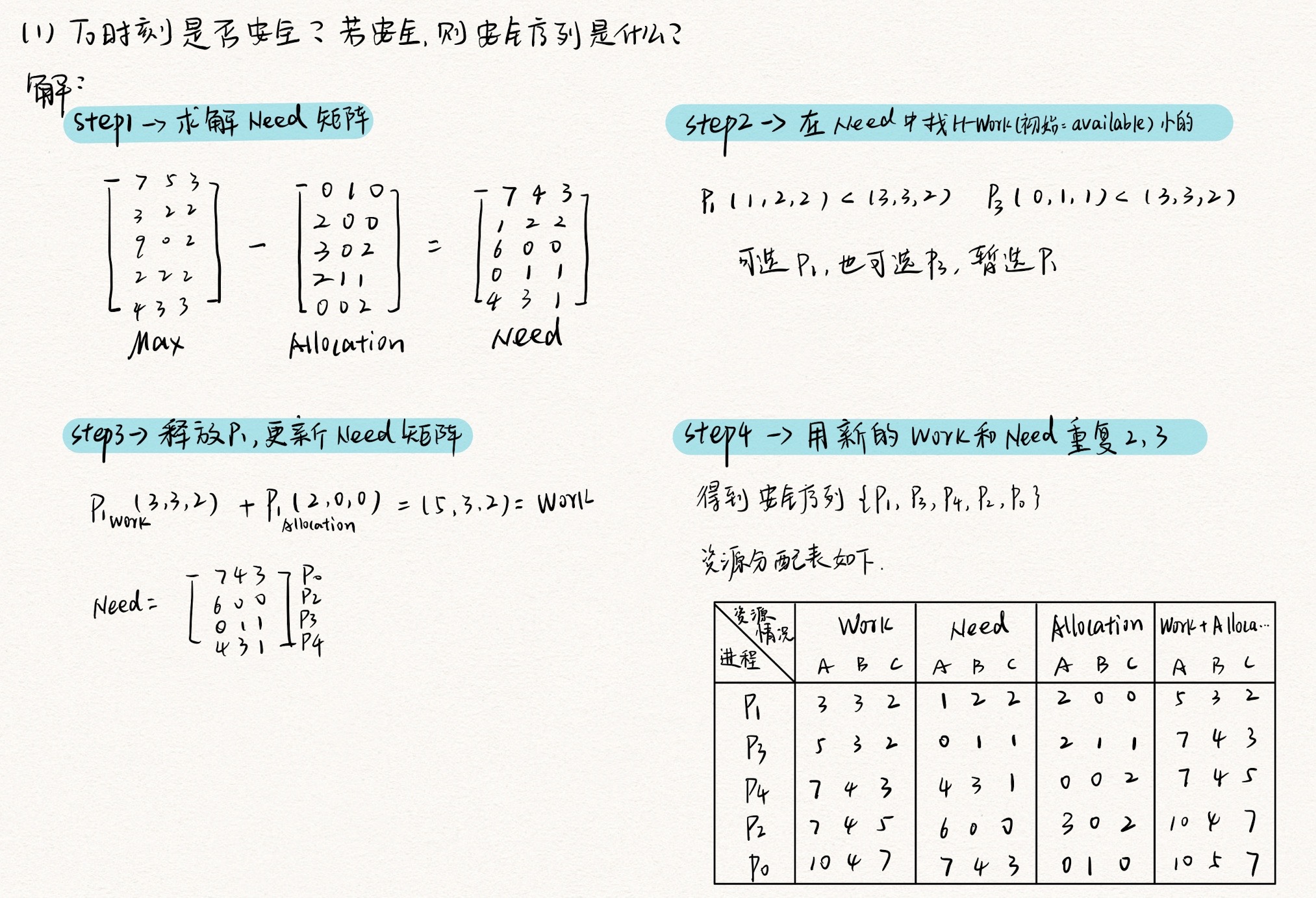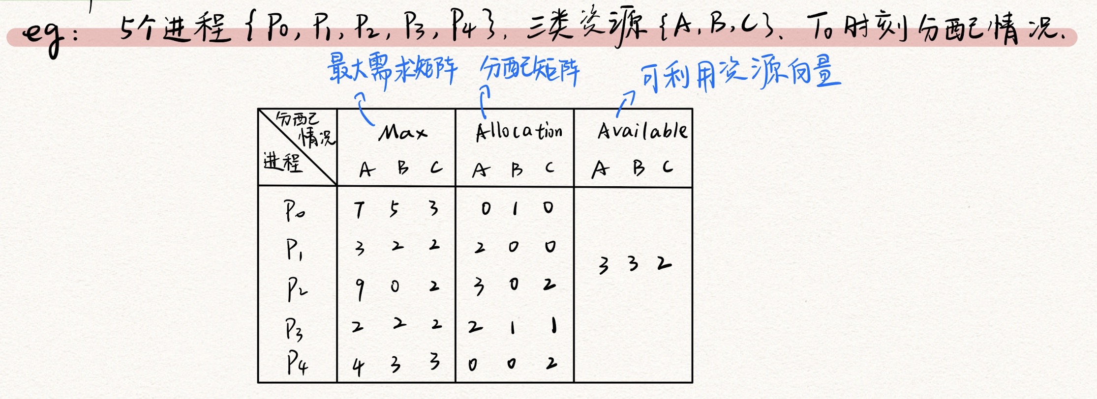 - 死锁避免时不会限制用户申请资源的顺序,需要进程运行所需资源的总量信息,不会给可能导致死锁的进程分配资源