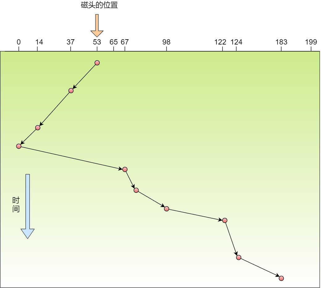 - 假设存在一个请求序列,每个数字代表磁道的位置