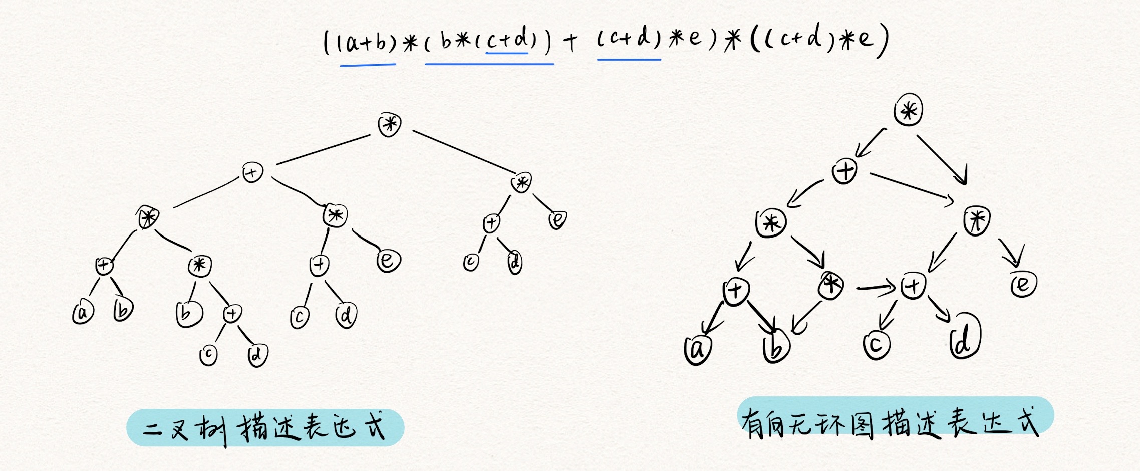 - 利用有向无环图描述表达式【顶点中不能出现重复操作数】