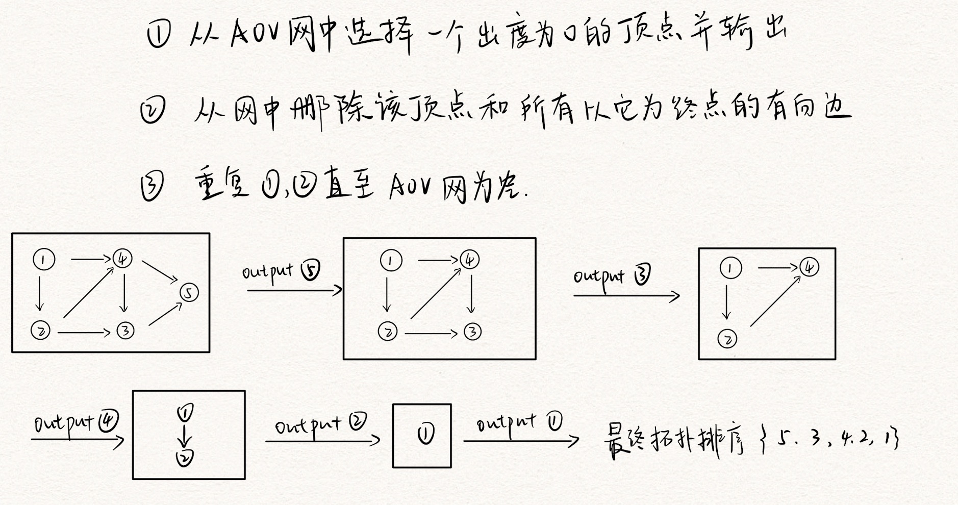 - 若有向无环图的拓扑序列唯一,不能唯一确定该图