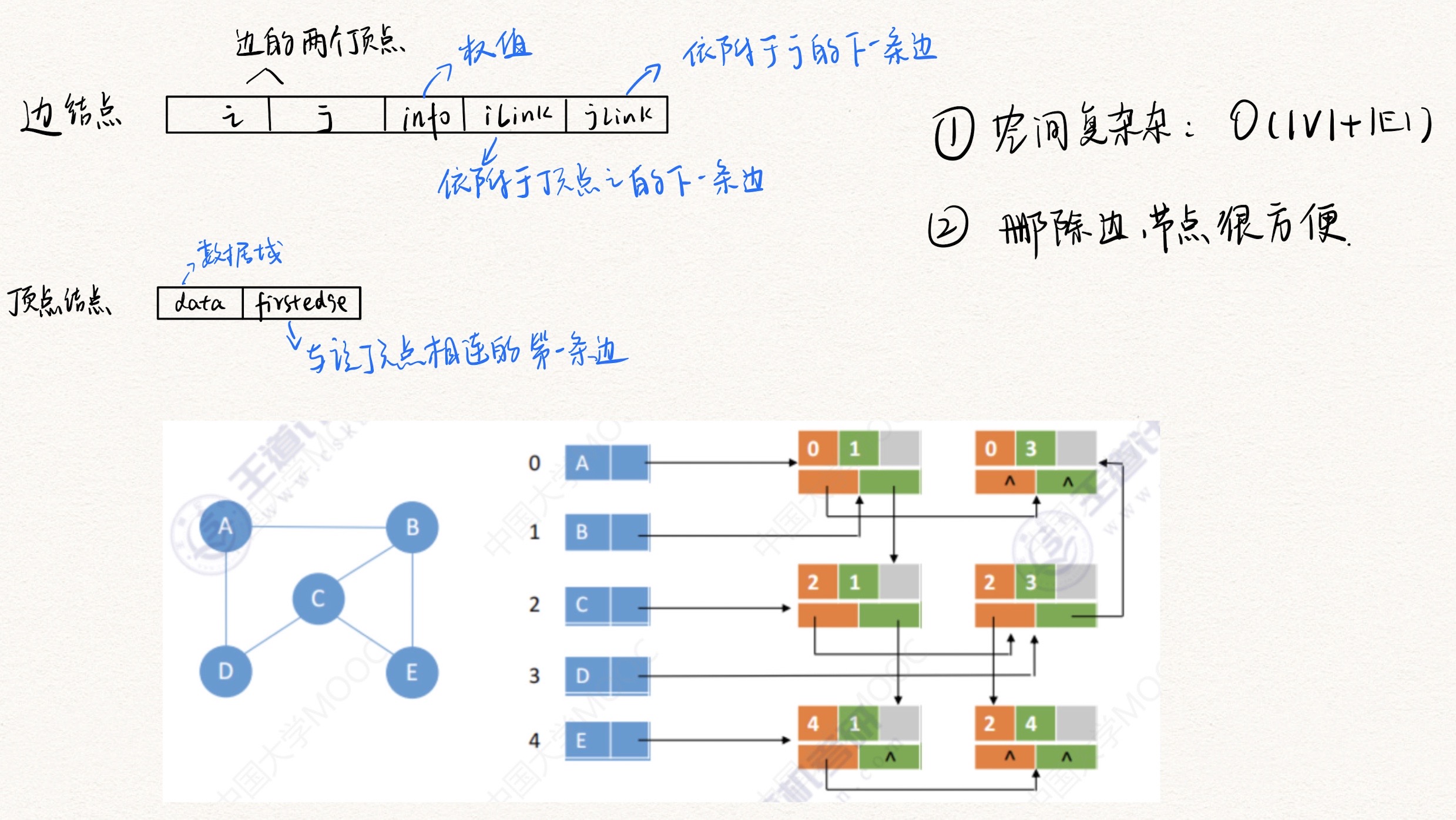 - 仿照十字链表的方式,对边表结点的结构进行一些改造