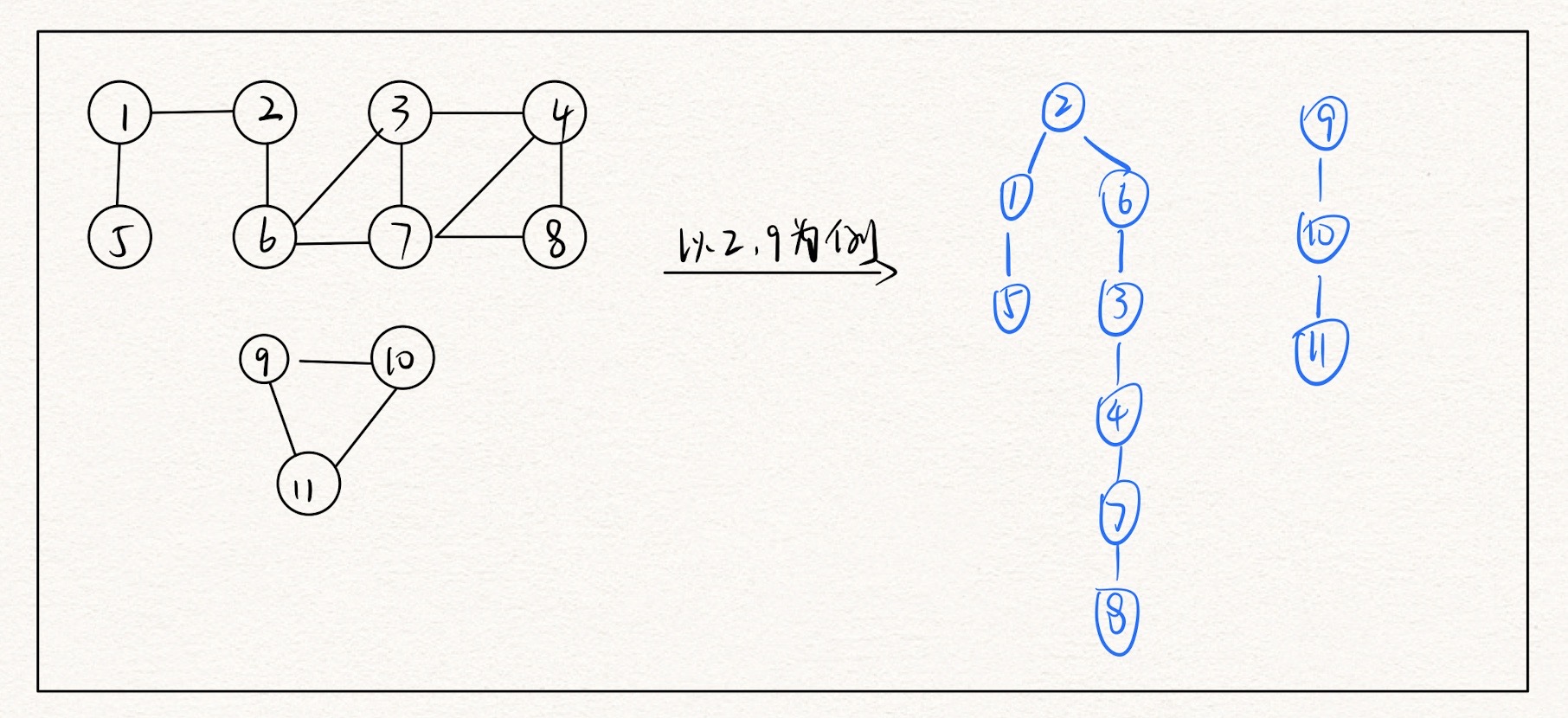 - 对于强连通图,从任一结点出发都只需要调用1次BFS/DFS