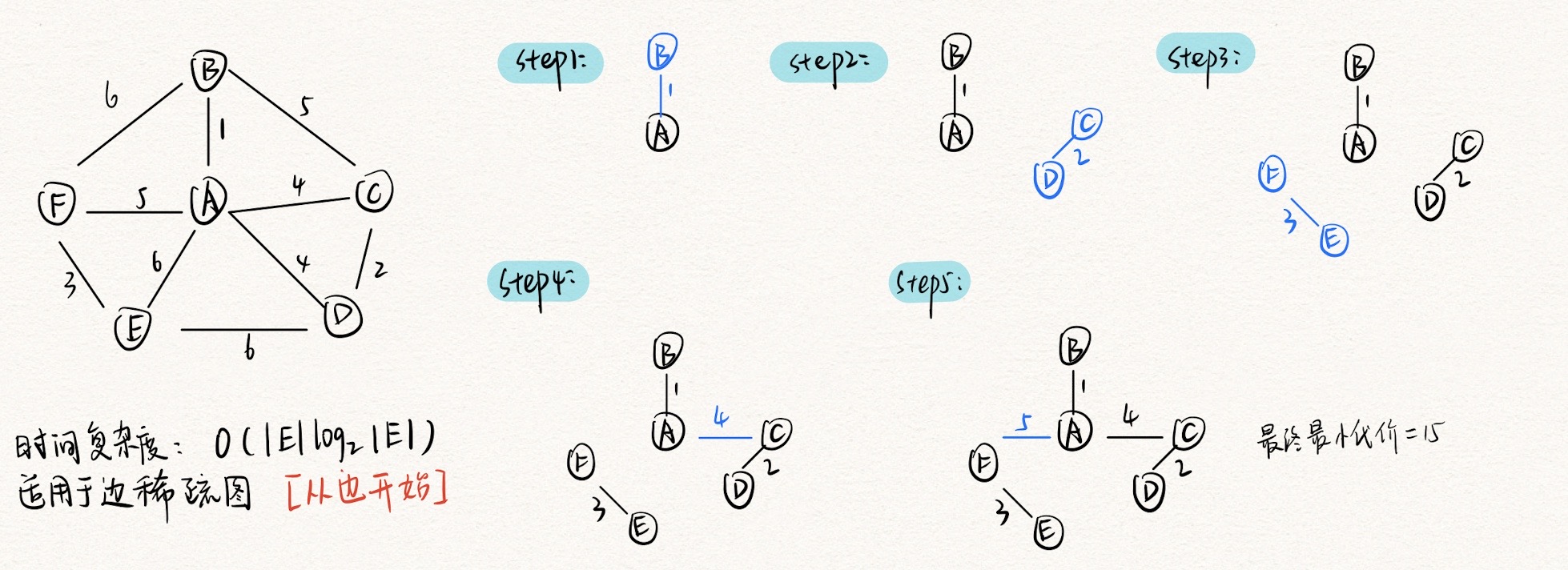 - 按权值的递增次序选择合适的边来构造最小生成树【不以自我为中心】