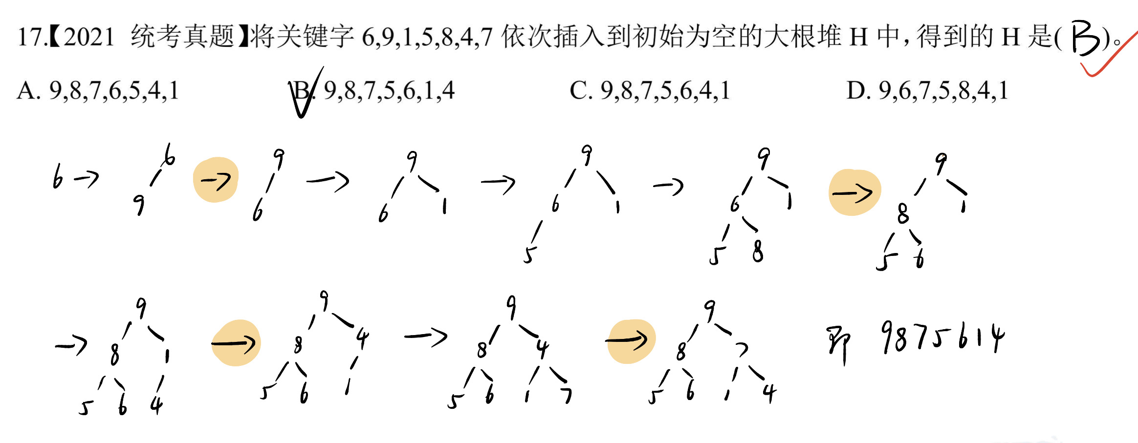- 堆排序的序列相当于二叉树的层次序列