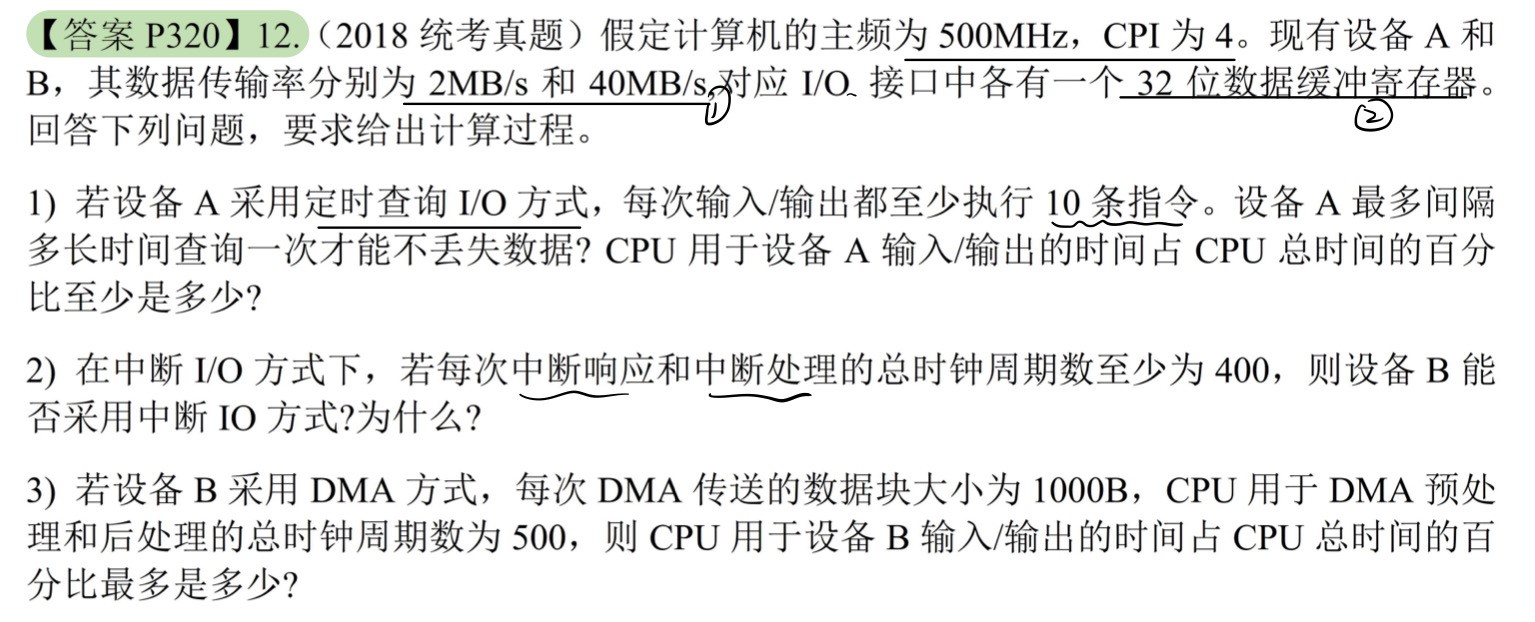 CPU用于B输入输出时间 = $40000\times500 = 2\times10^7$个时钟周期