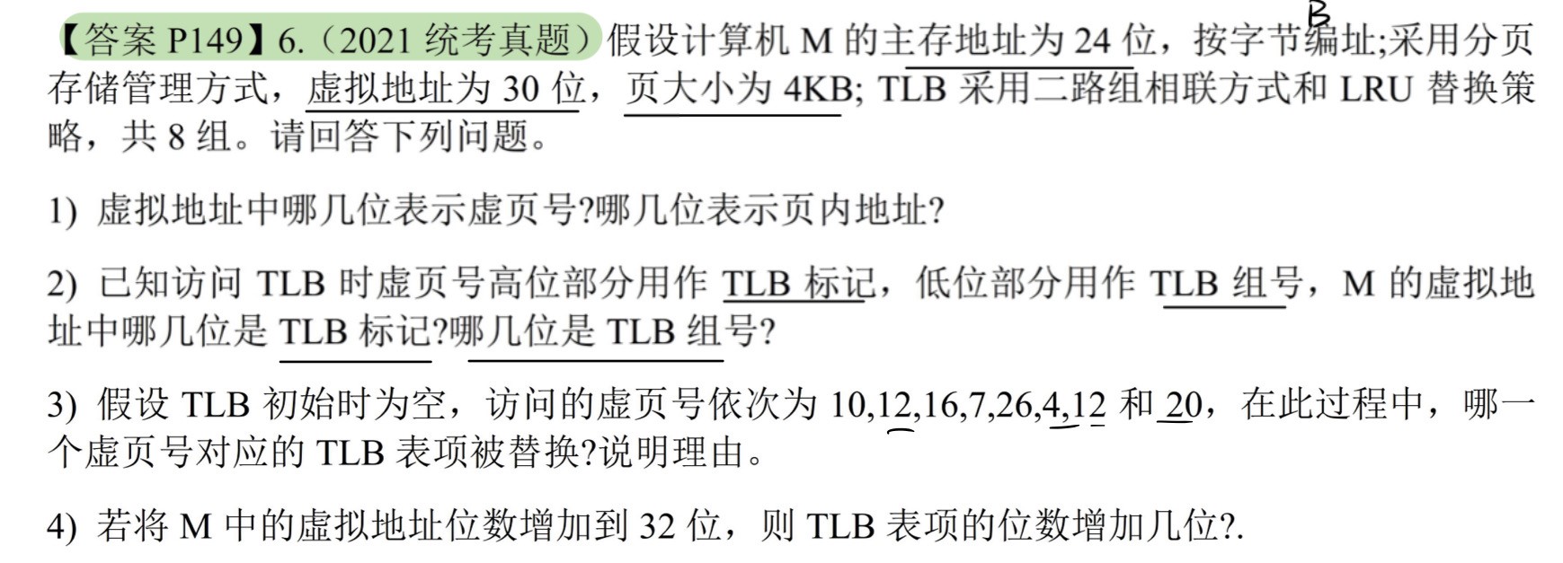 TLB组号依次为2,4,0,7,3,4,4,4