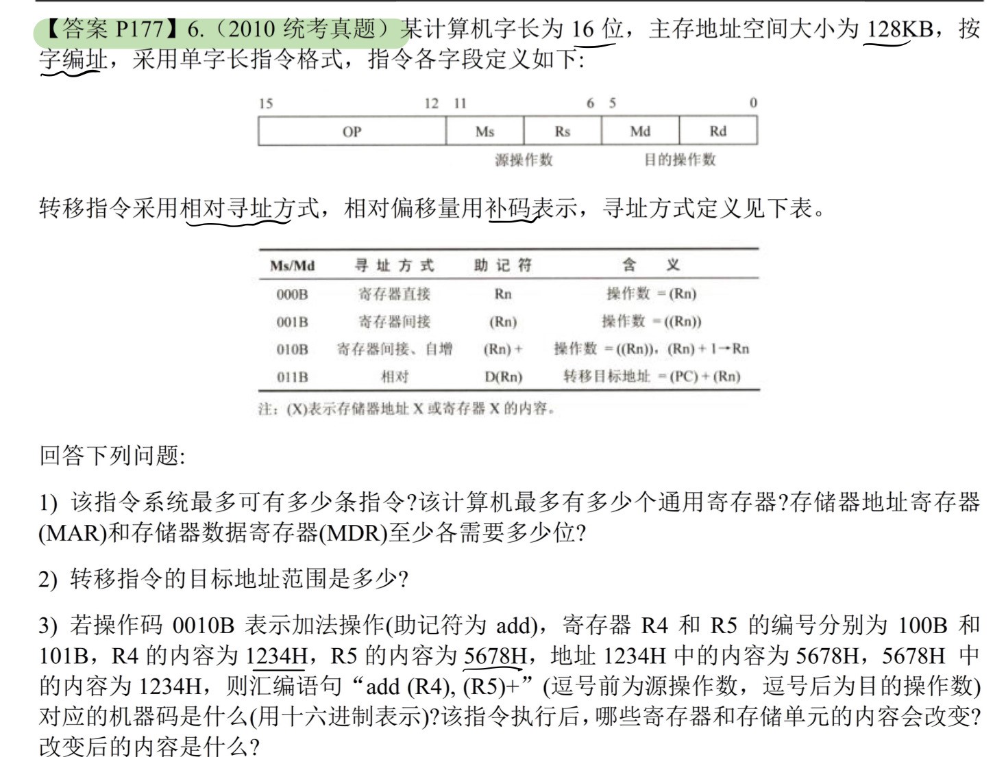 ALU宽度16位,可寻址大小 = $2^{20}B = 1MB$
