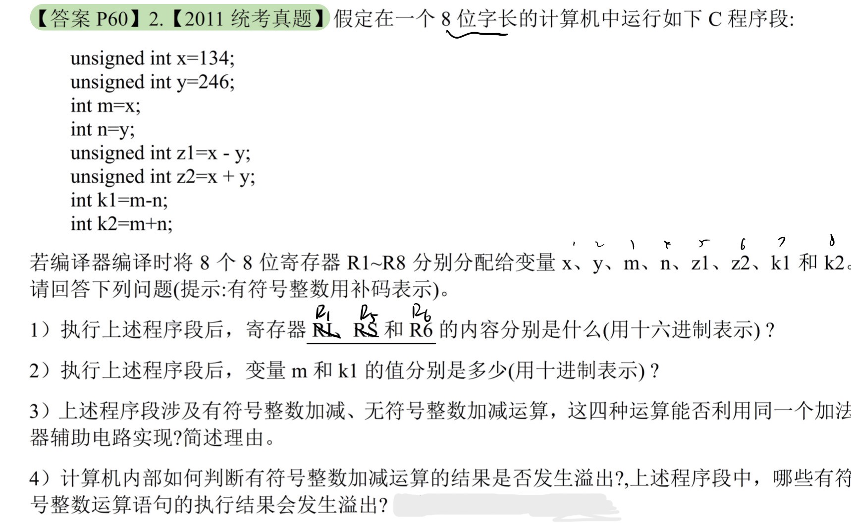 X = $(134)_{10} = 1000 0110B =>R_1的内容为86H$