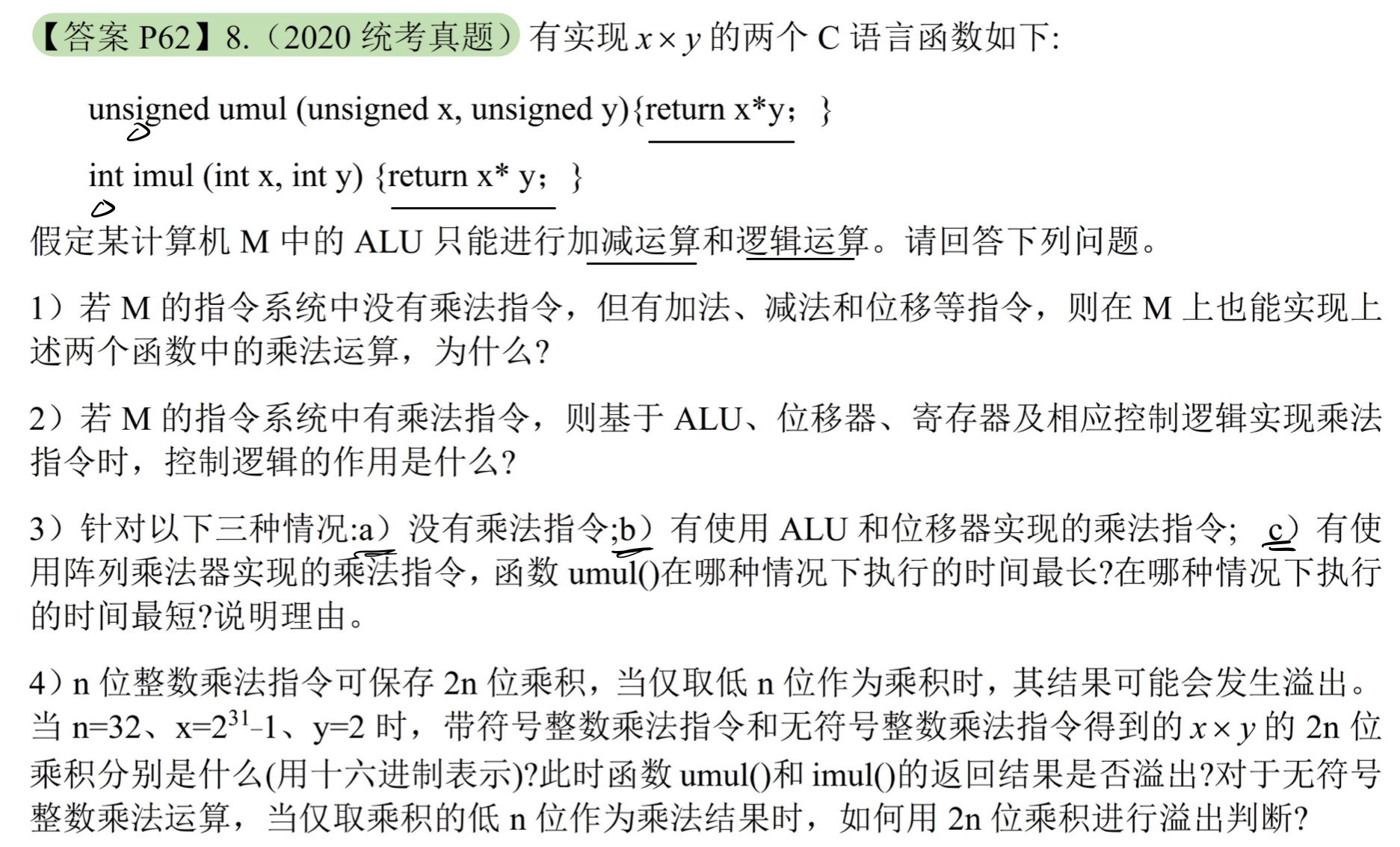 - 一定与机器字长相同的部件:ALU,通用寄存器