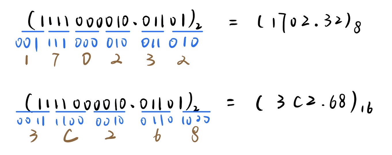 - 二进制$\rightarrow$八进制或十六进制