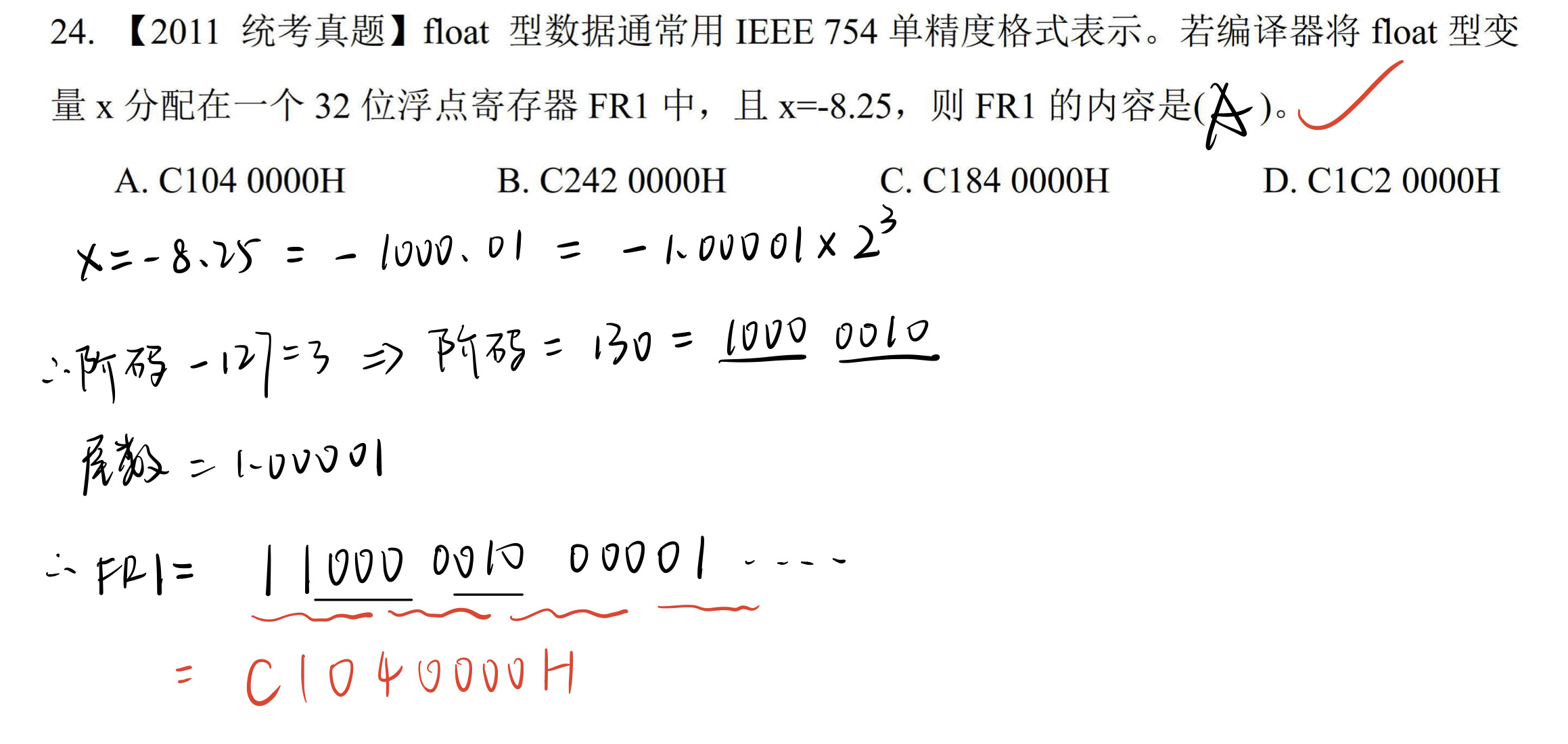 0 | 0000 0000 | 0000 0000 | 0000 0000 | 1000 0000 |