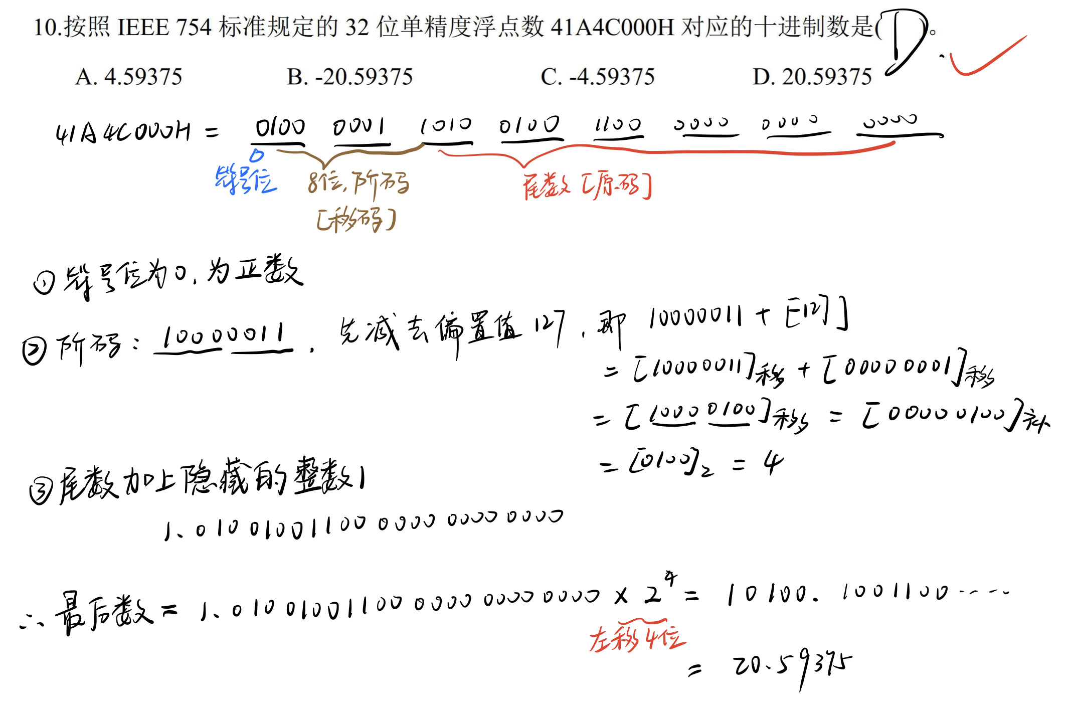 - $b = 2^1 * (+0.01001) = 2^0 * (+0.10010)$