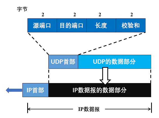 - 用户数据报UDP有两个字段:数据字段和首部字段