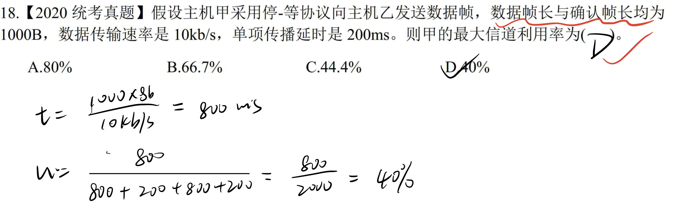- 若出现重传,则对于传送有用的数据信息来说,信道利用率还要降低
