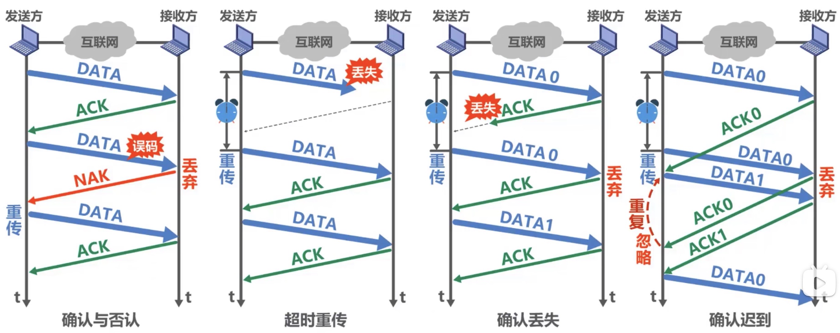 - 传输差错还包括分组丢失,分组失序,分组重复