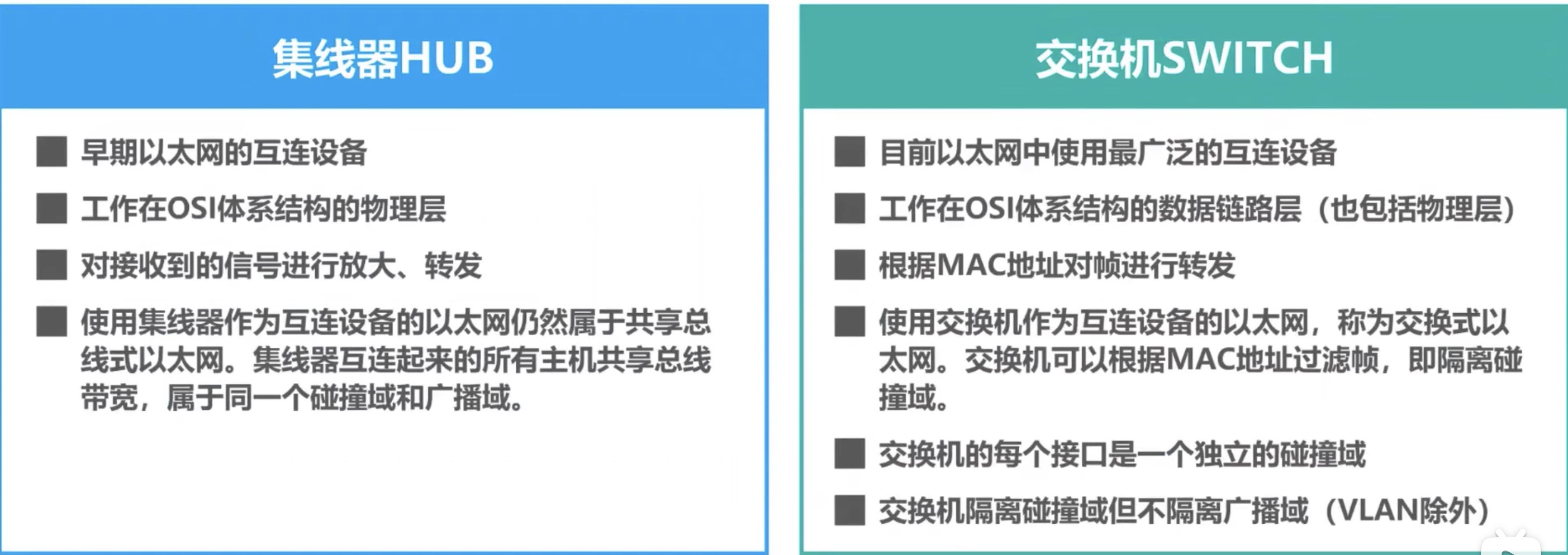 OSI参考模型层次 | 三层:物理层,数据链路层,网络层 | 两层:物理层,数据链路层 |