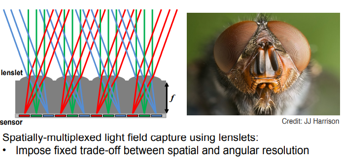 苍蝇的复眼成像原理就是成像一个光场,盯着原本拍出的一张照片来看,那照片上的任何一个像素记录的是Irradiance(平均各个方向的光)