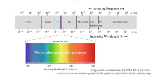 光谱是光线的能量在不同的波长上的分布。光谱是一个很长的范围,图形学中重要的是可见光的光谱,即分布在波长在400nm到700nm之间