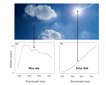 如图,可通过不同调节方式使两个颜色一致来表现显示器上太阳颜色,但混合后光谱可与之前的完全不同