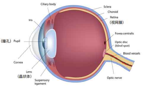 人眼的瞳孔可调节大小,对应着光圈;晶状体对应透镜,可通过肌肉的拉扯调节焦距;视网膜进行成像