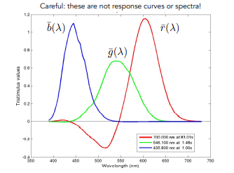 CIE是一个组织,定义了RGB系统,给定的任何一个颜色是单波长的颜色,光线的SPD是一个单一的函数
