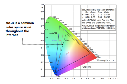 可见图中边界为扇形,这个就是色域,整个颜色空间可以显示的颜色