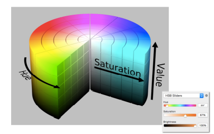可以选择各种不同的色调(Hue)、饱和度(Saturation)、Brightness(亮度)或Value(值)