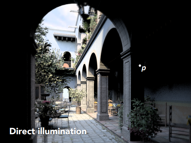 - 直接光照(光源能直接照射的地方有颜色,其余位置为黑的)