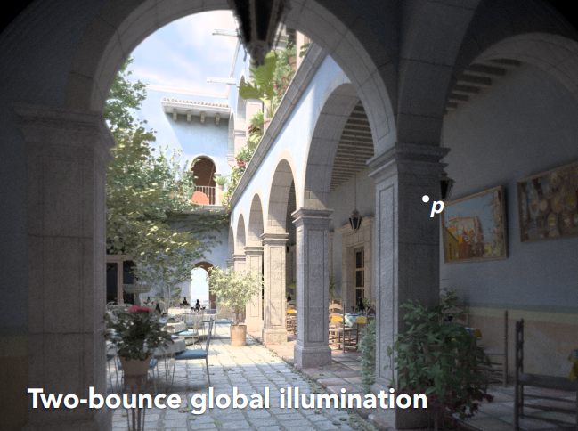 - 两次间接光照(光弹射一次,两次,三次累积后的全局光照效果)