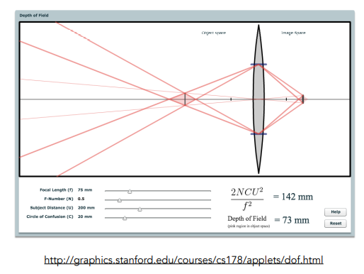 因此计算景深就是计算CoC在这个很小的一段范围内,认为对应场景是清晰的