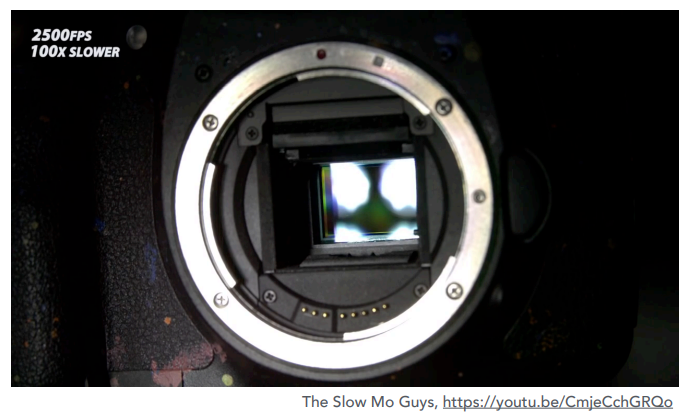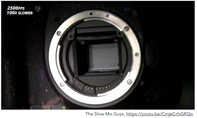 电子控制的快门可以认为是任何时刻任何位置同步打开,但机械快门则需要一个过程,如果物体运动比机械快门的速度快就会出现Rolling Shutter问题,因为图像上不同位置可能记录的是不同时间进来的光