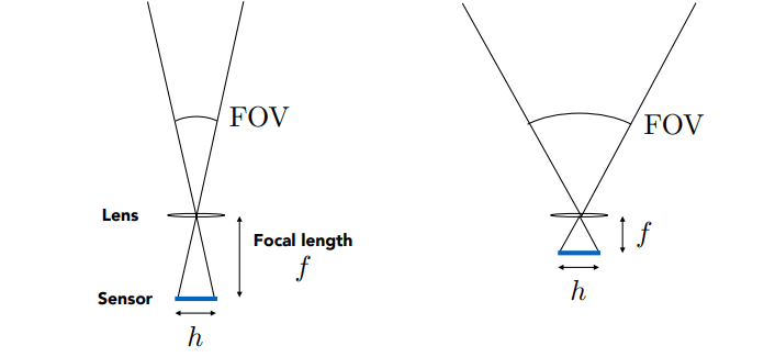 将传感器放置在离小孔更近的地方会使f变小,FOV变大,这样就可以通过内部设计推断视场有多大