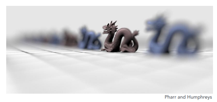 虚化正是来源于透镜。在计算光线追踪是,我们使用的就是针孔摄像机的模型,所以也得不出不同的地方会有不同的模糊