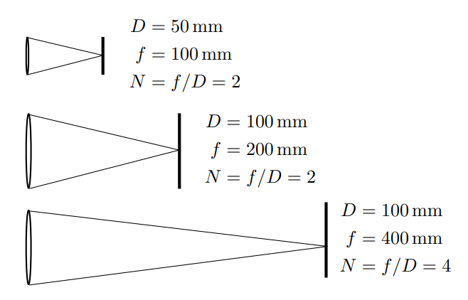 F数的非正式理解:光圈的直径的逆,即$\frac{1}{直径}$
