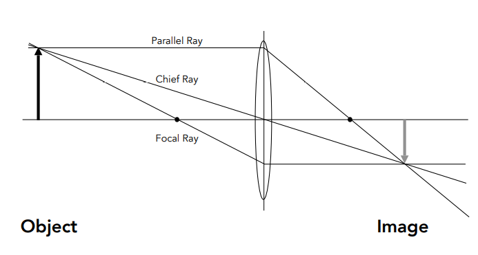 如图左边远处有一个平面(Focal Plane),所有的光经过透镜后都会被聚焦到右边一个平面上(Image)