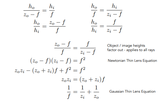 - 薄透镜公式(Gauss's Ray Tracing Construction/Gaussian Thin Lens Equation)
