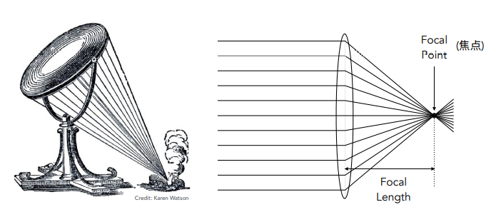 - 对于平行于透镜的光如果打进来会被集中到一个点上(焦点),定义焦距是焦点到透镜中心的距离