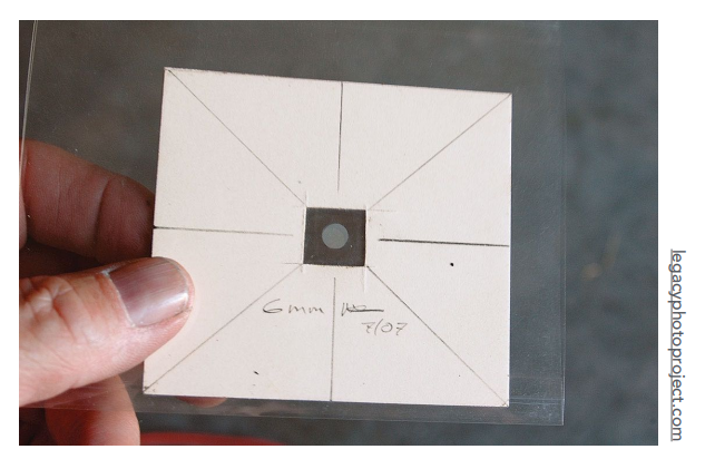 真正做一个如下图的针孔(硬纸板中间有一个6mm直径能透光的地方),也能用这个小针孔拍摄某个场景,记录在胶片上。但拍出来的东西是没有深度可言的,任何地方都不会是虚的,都一定是清楚的