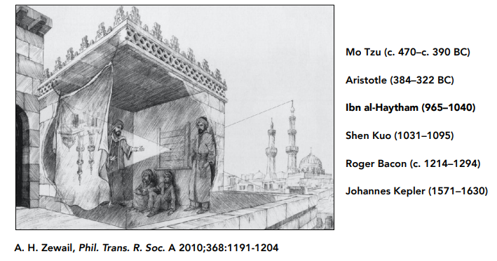小孔成像对应的相机为针孔相机(pinhole camera)