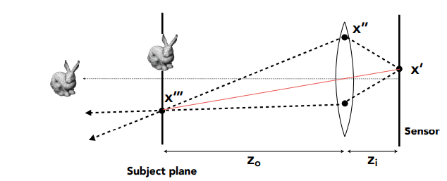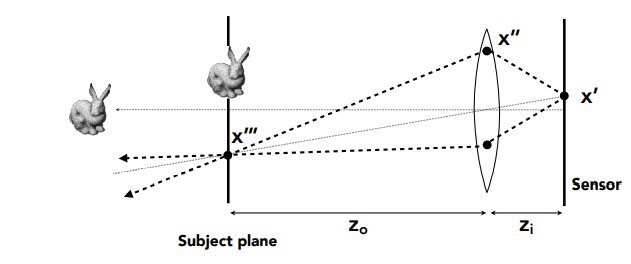 - 假设薄透镜可以任意改变焦距(透镜焦距固定,相机能改是因为透镜组)