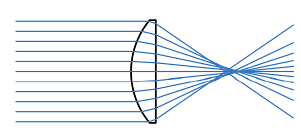 如下图,一面是凸的,一面是平的,这样就不可能将光聚在一起