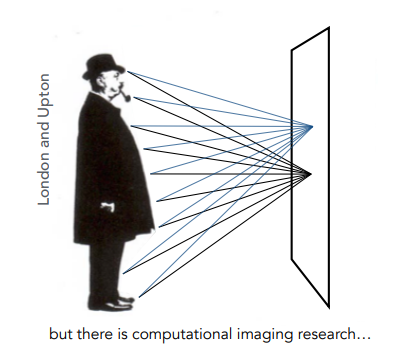 当然还有很多种成像方法,最简单的捕捉成像方法是使用相机。当然现在还在研究很多别的更好成像技术(比如:光线的传播其实是有时间的,有一些研究会研究光在极短时间内的传播,就可以看到光线真正在空间中进行传播的过程,这个过程叫Transient image(瞬息图像))