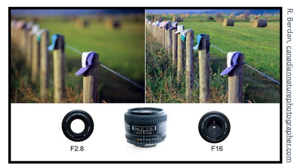 - 下图第一行参数中用F数表示光圈大小,黑色为遮挡物,白色为光圈大小,F数越大,光圈越小(点号写成逗号为欧洲写法)
