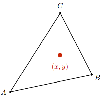 $$(x,y)=\alpha A + \beta B + \gamma C = \alpha + \beta + \gamma = 1$$