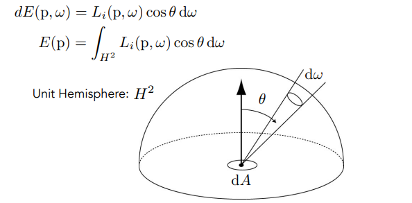 E(p)即为irradiance,等于所有方向上的Radiance的和