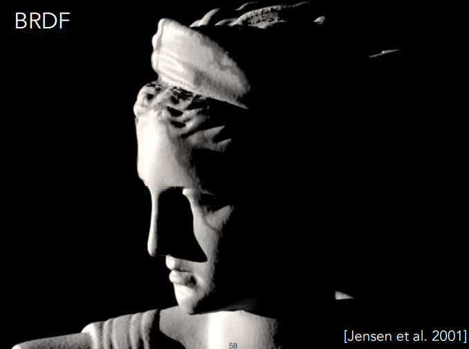 BSSRDF:可理解为吧BRDF的概念延伸到从一个点以任意方向进来再从任意一个其他的地方以任意方向出去