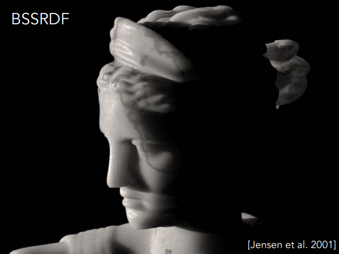 和BRDF概念一致,只是在中间加入了一个Subsurface Scattering,次表面反射对应的BSSRDF规定了光线从哪个点和方向进,从哪个点和方向出
