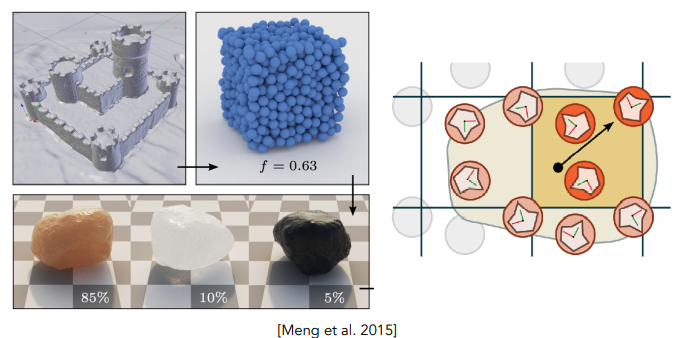 所以将织物认为是在空间中分布的体积,然后可以将其划分成超级细小的格子,每一个格子里面大概知道纤维的朝向、分布、复杂程度等等,那就可以将这些性质转化成光线的吸收和散射。将这些性质转换成对云烟雾这种反射介质的渲染,不再将布料当成一个面,而是当成一个体积,体积中任何一个微小的块都知道它的性质