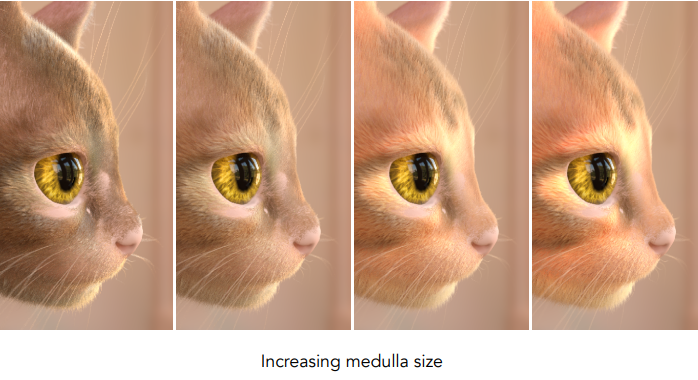 由此可见,Marschner Model中忽略髓质在动物毛发计算中并不适用