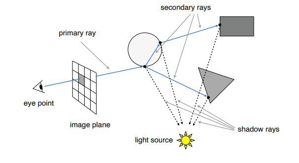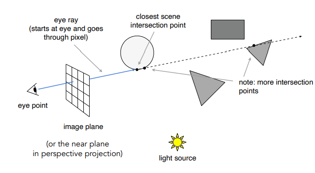 - 光线从光源传播到眼睛(且光路是可逆的)